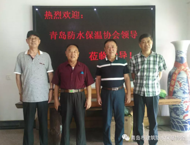 疫情好转,我协会会员单位复工复产,业绩蒸蒸日上,7月17日上午由协会会长于建、荣誉会长曲烈遵、书记马京富来到青岛润邦防水建材有限公司,受到了董事长闫炳润接待。